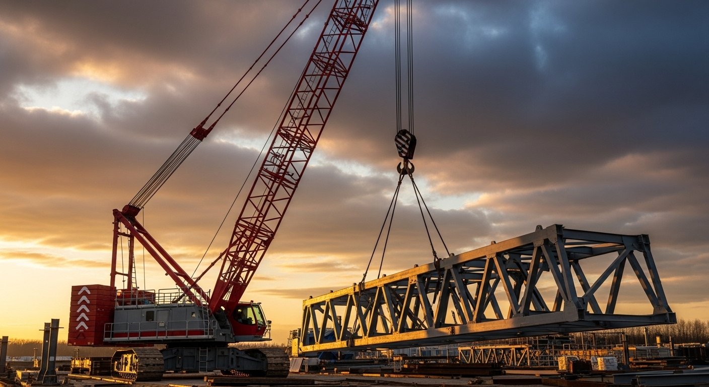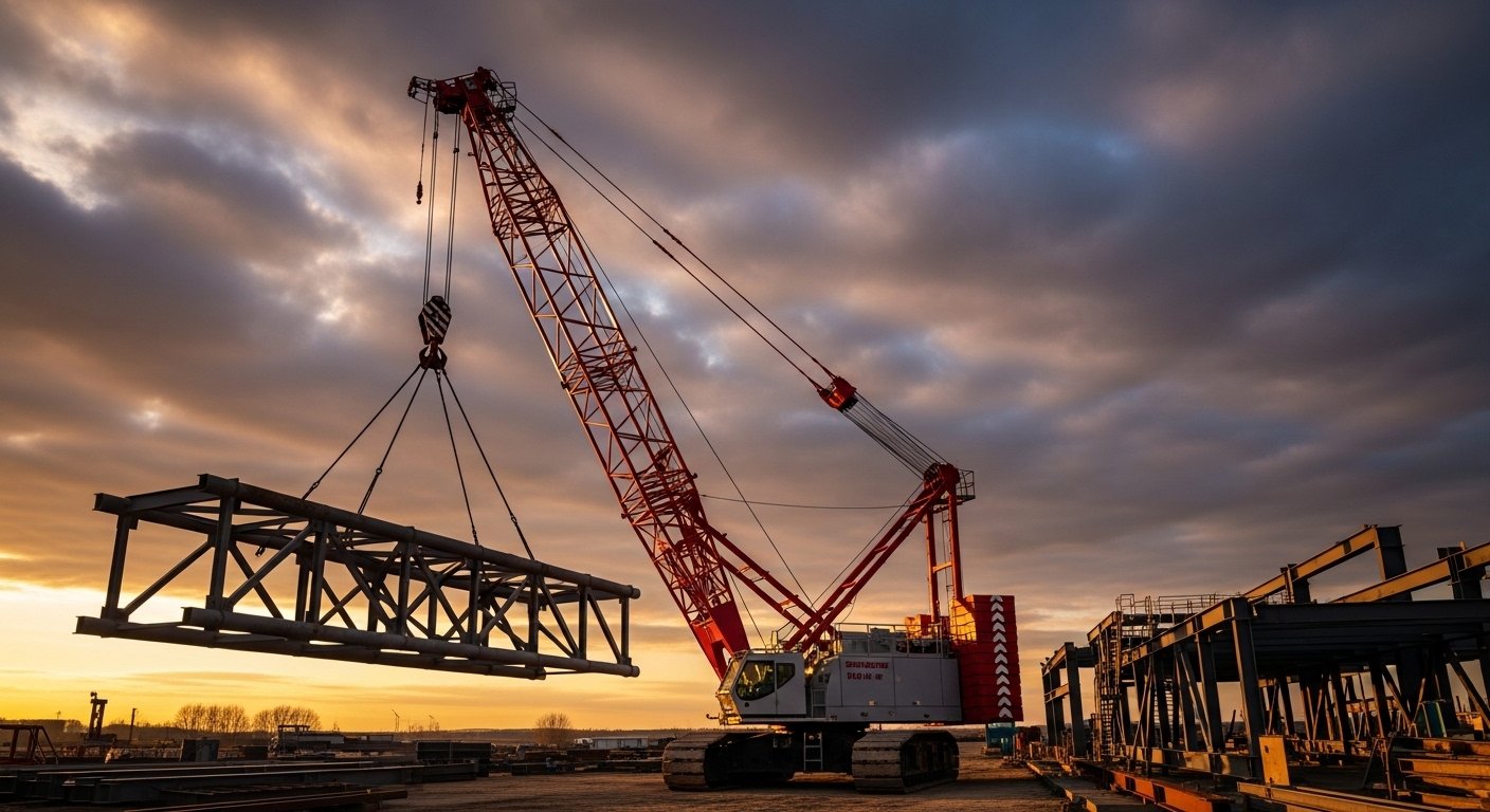 Renta de grúa industrial para izado y mantenimiento de cargas pesadas. Maniobras especializadas para instalación de maquinaria y estructuras metálicas.